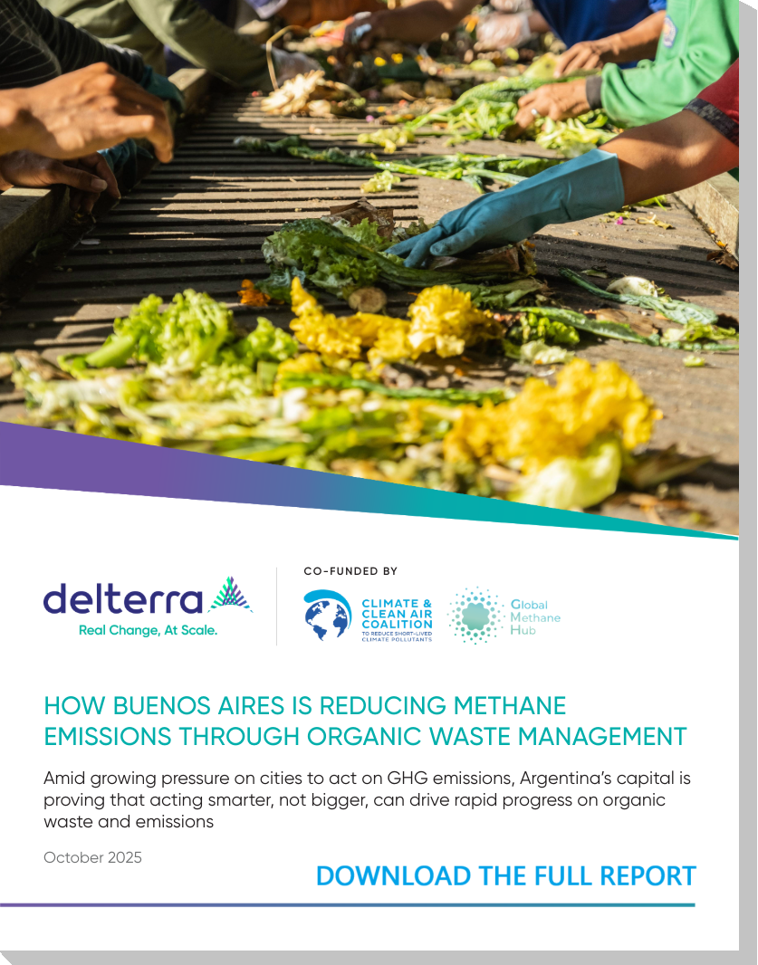 In Buenos Aires, where less than 3% of organic waste is currently source separated and recovered and most ends up in the CEAMSE Norte III landfill – one of Latin America’s largest landfills – Delterra, in a project co-funded by the Climate and Clean Air Coalition (CCAC) and the Global Methane Hub (GMH), worked with the city to prove that optimizing existing systems can deliver outsized results.