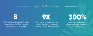 I am delighted to share our exciting results from the implementation of our Operations Platform. It has gone live in eight sorting centers across Argentina and Indonesia, where it has already had significant positive impacts. Perhaps the most impactful result on a human level – we’ve seen as much as a 9X reduction in the time spent manually doing processes, such as reconciling cash payments and deposits at month-end, freeing up this time for staff to do other things.