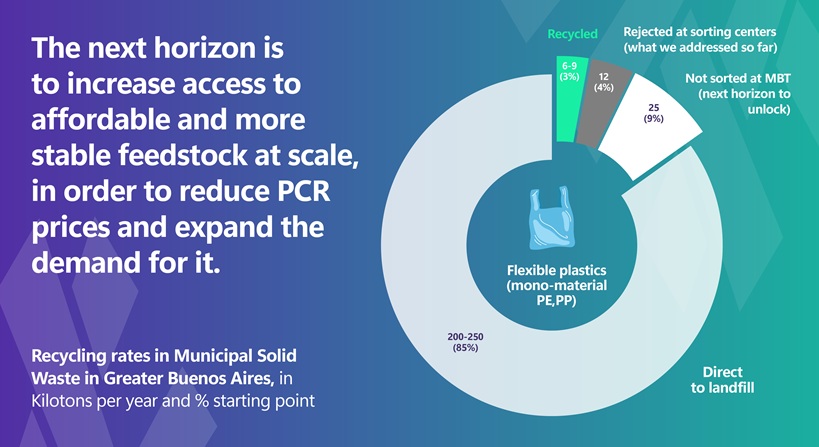 Flexible plastics make up a large share of municipal waste in Buenos Aires, yet only a small fraction is recycled today.