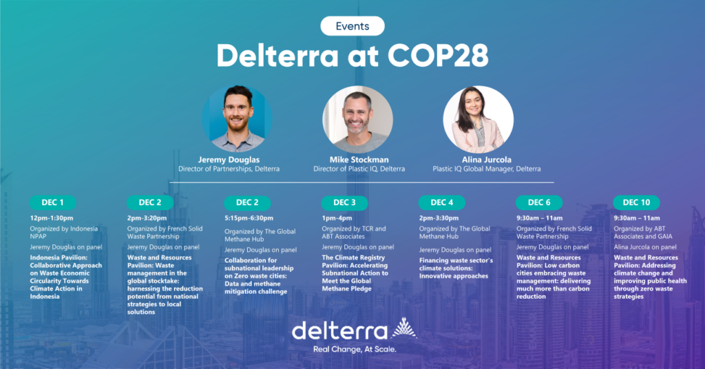 Delterra is excited to be participating in COP28 in Dubai and to see increasing attention given to the powerful climate mitigation opportunities hidden in our trash. We invite all delegates interested in the link between waste management and climate change to join us in a number of highly-relevant discussions throughout the event.